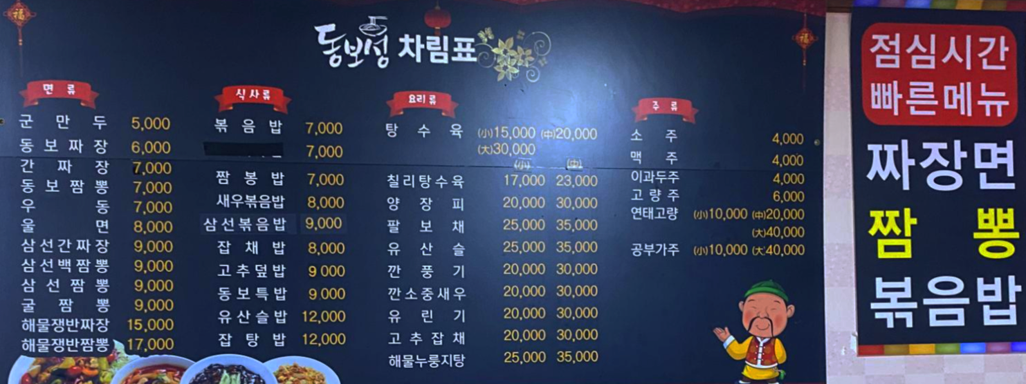 LG화학 사택 가는 길 근처에 '동보성' 이라는 중국집이 있다. 짜장면 맛집이다!