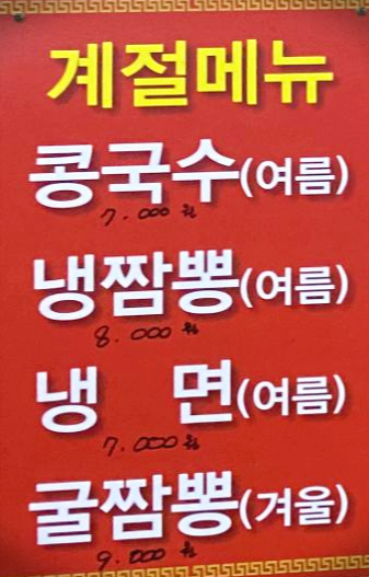 - 삼선간짜장 : 9천 원 (곱배기 1만원)