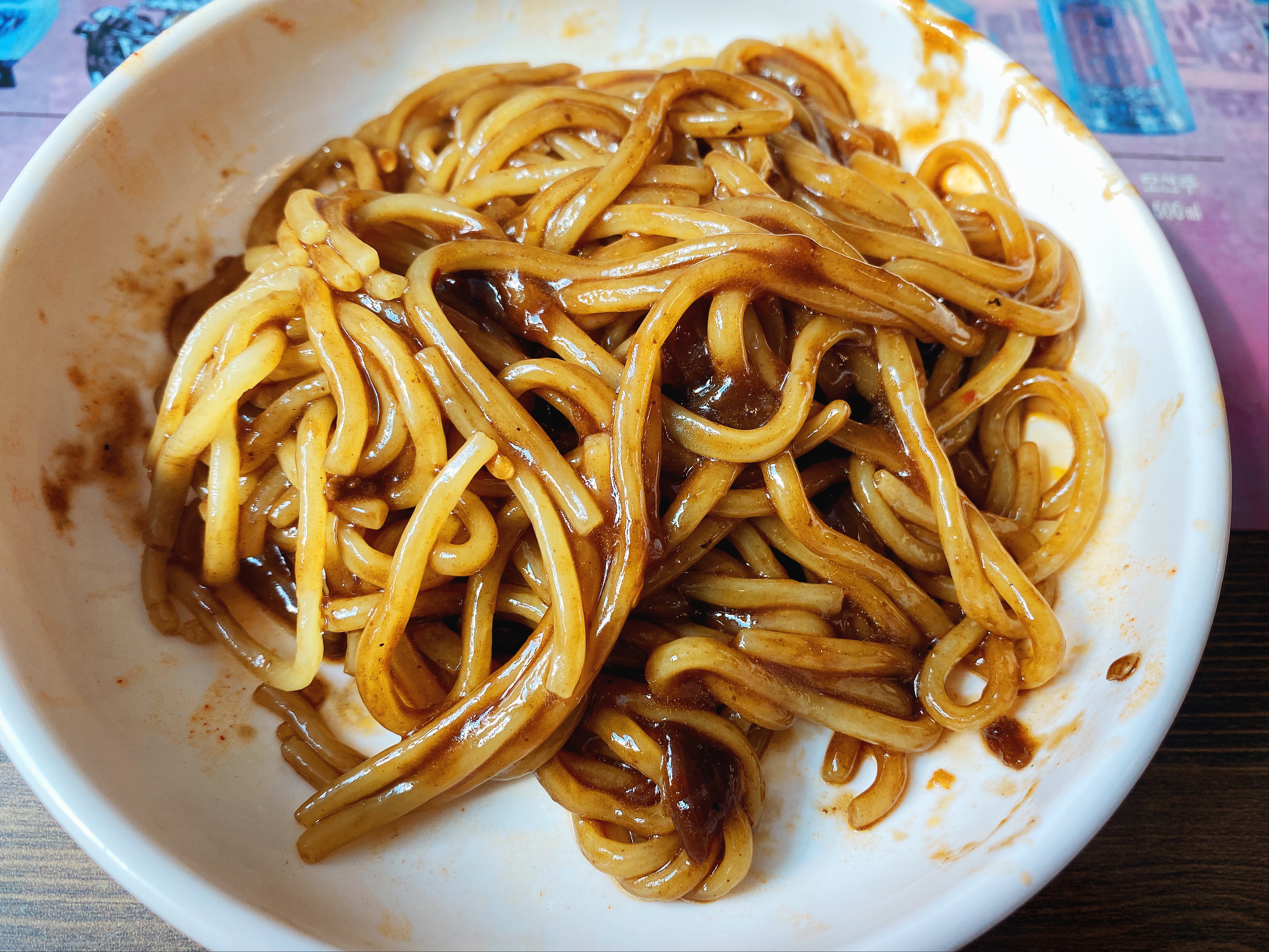 항아리에 짜장면이 담겨져 나오는데, 고추가 들어가있고 약간 매콤한 맛이 나면서 맛있다.