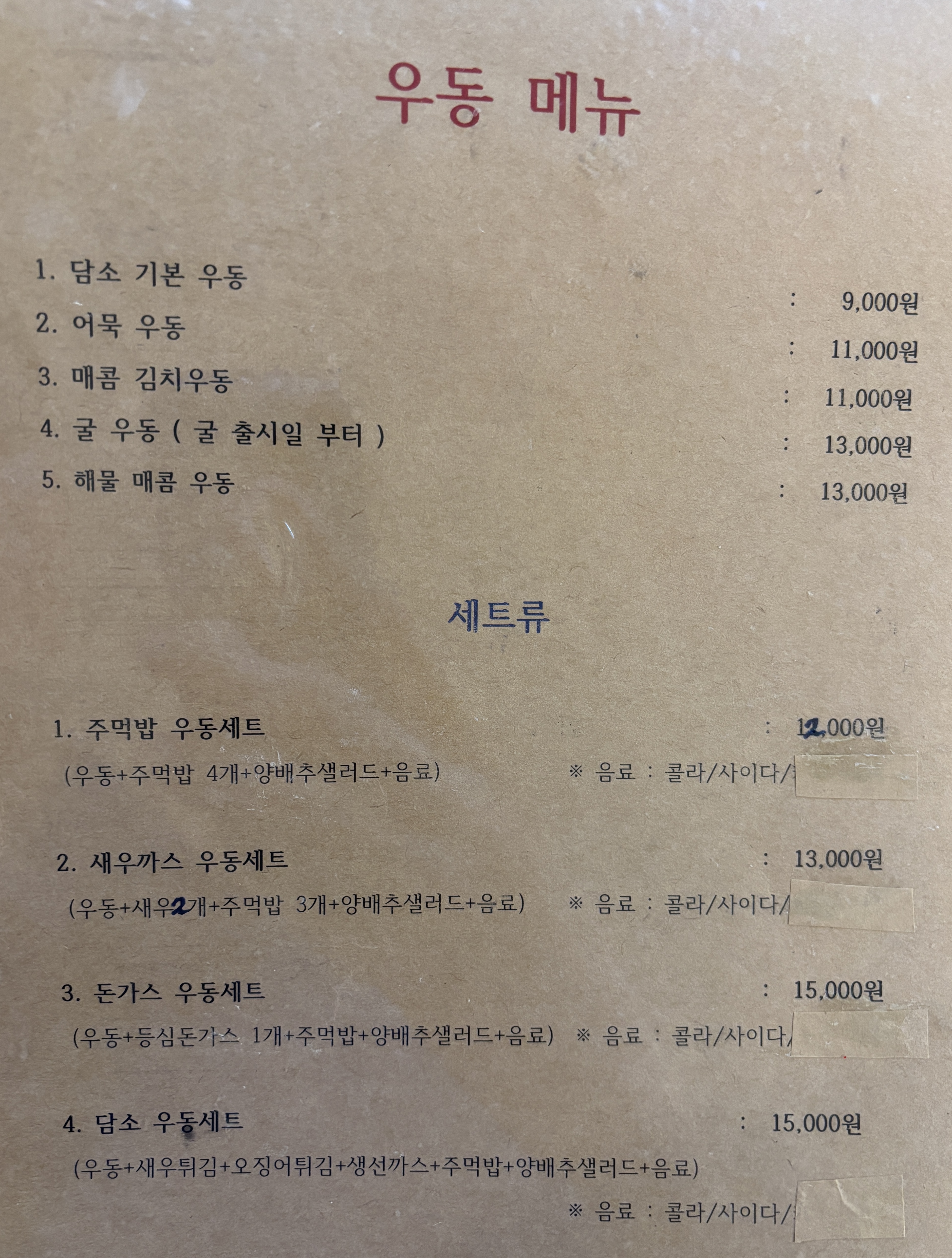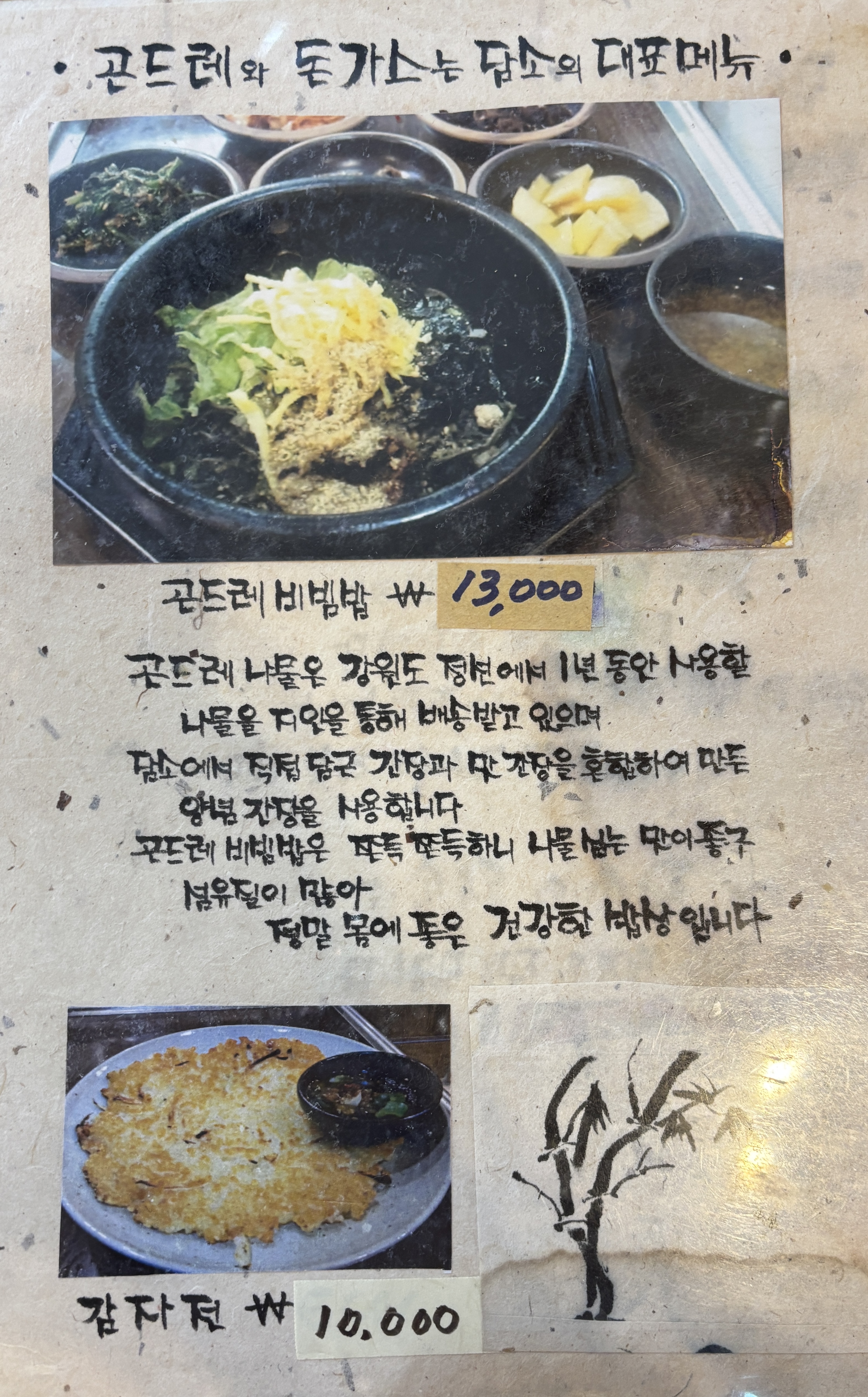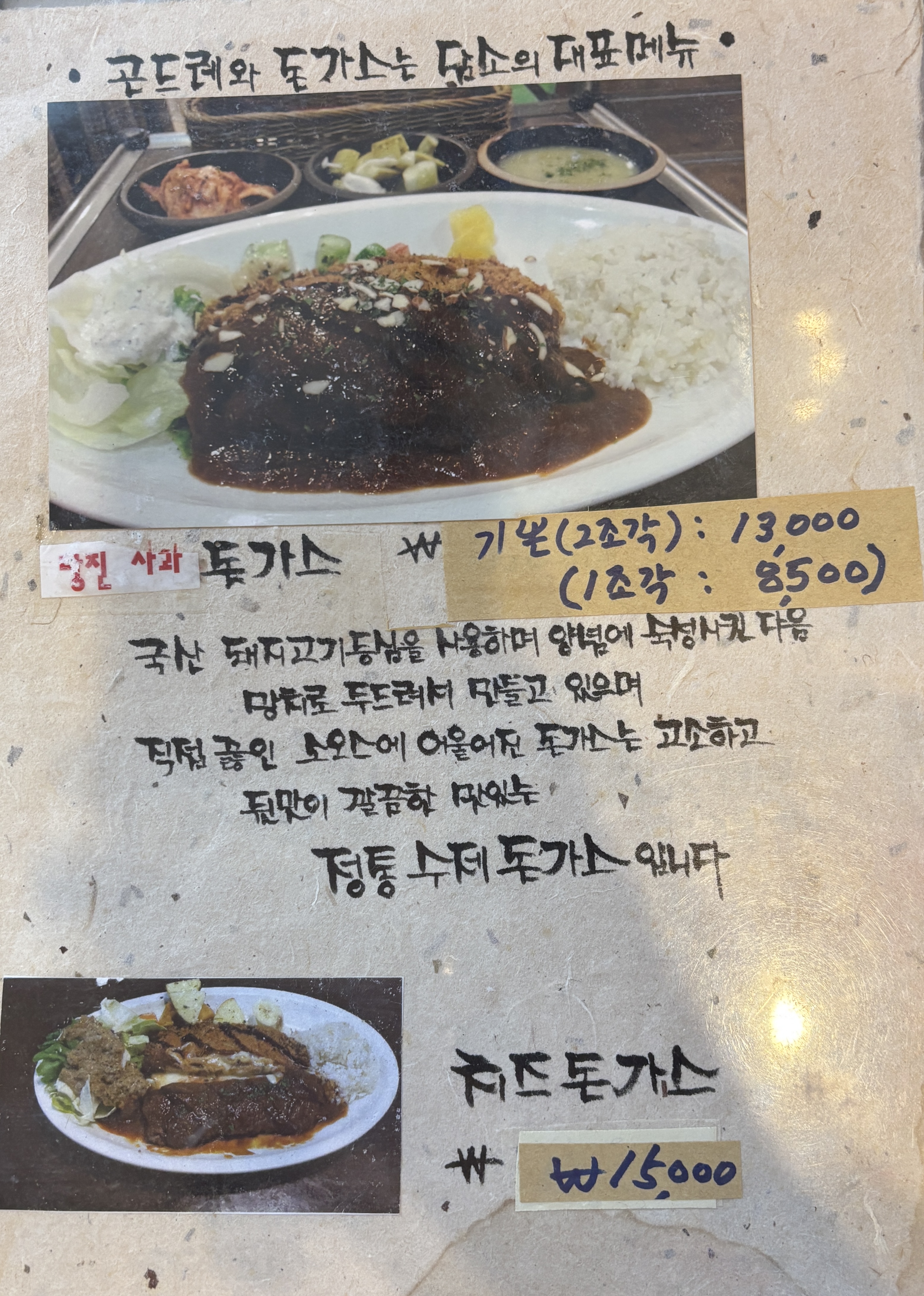 돈까스, 우동, 곤드레비빔밥 등