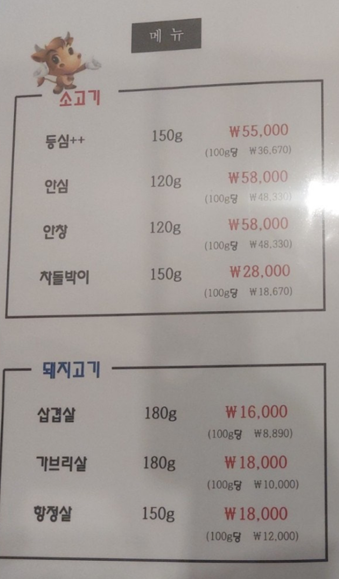일부 고기는 미리 전화로 예약 안하면 못먹을 수 있다