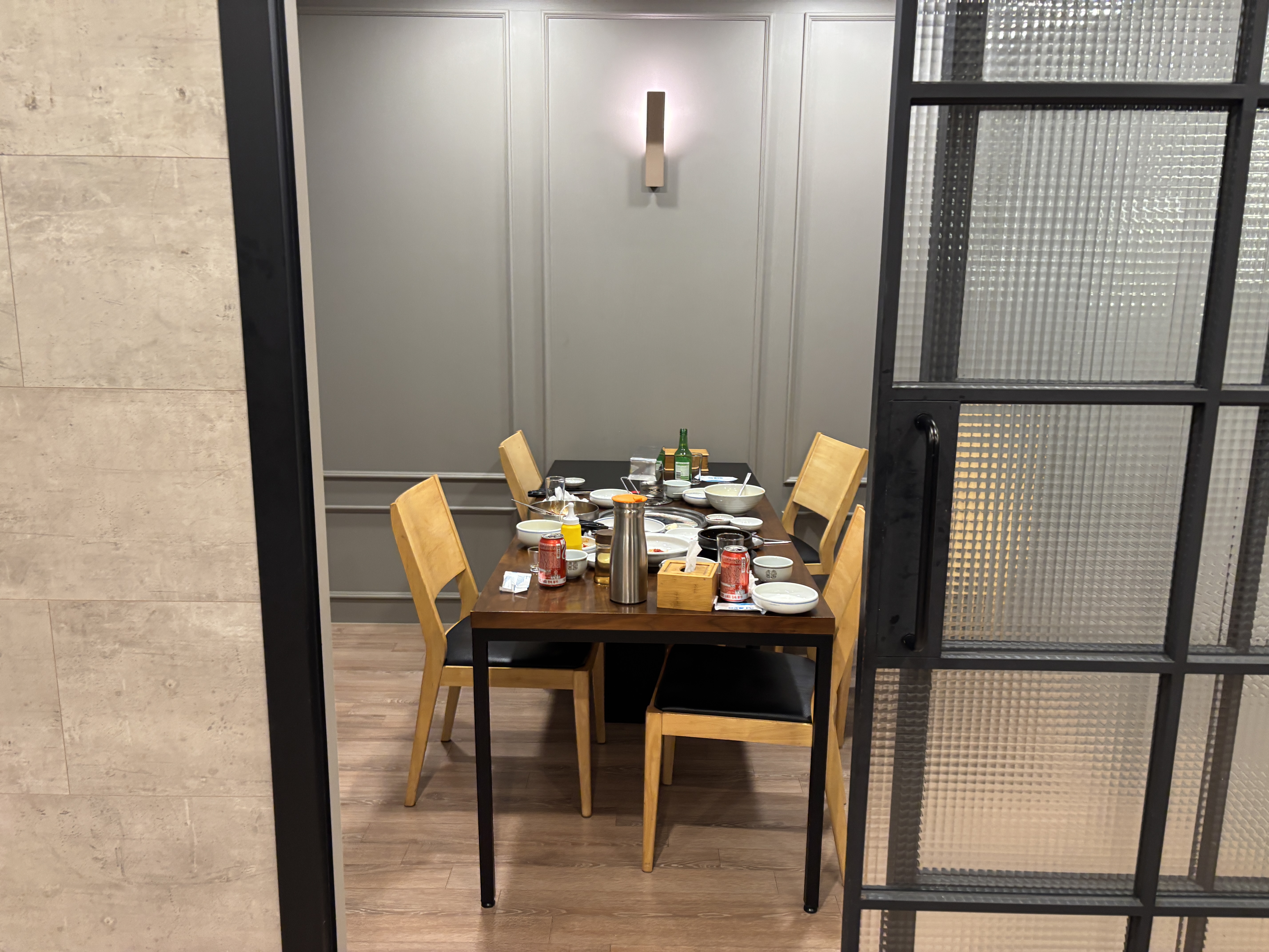 건물은 깔끔하고 모두 룸이고 룸도 일반적인 룸보다 넓어서 회식하기 아주 좋다